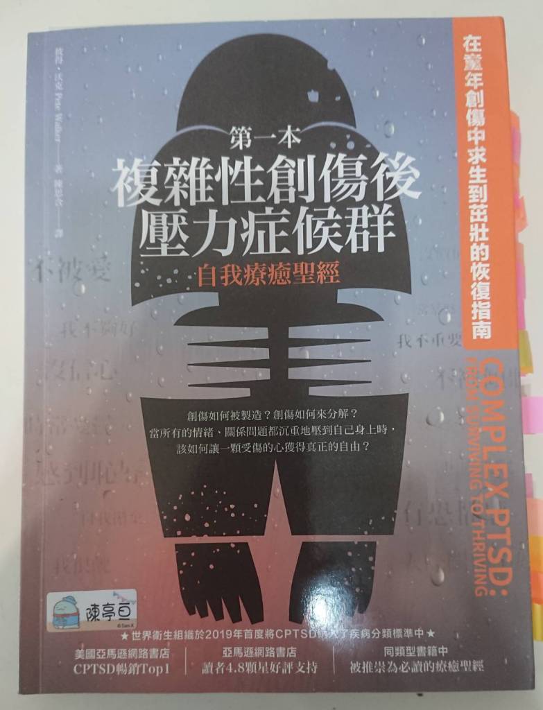 這本書裡有許多很重要的觀念,幫助我把過去許多無法連起來的概念都連接起來,雖然我一開始看到這本書的書名時內心翻了一個白眼,一來是我不喜歡這些新的名詞,在PTSD以後又創造了一個新的詞CPTSD,感覺又更複雜了一點,二來是「自我療癒聖經」這種名詞感覺就很容易言過其實,但我看完以後發現我錯了,這本書的確帶給我許多,只能說非常療癒。