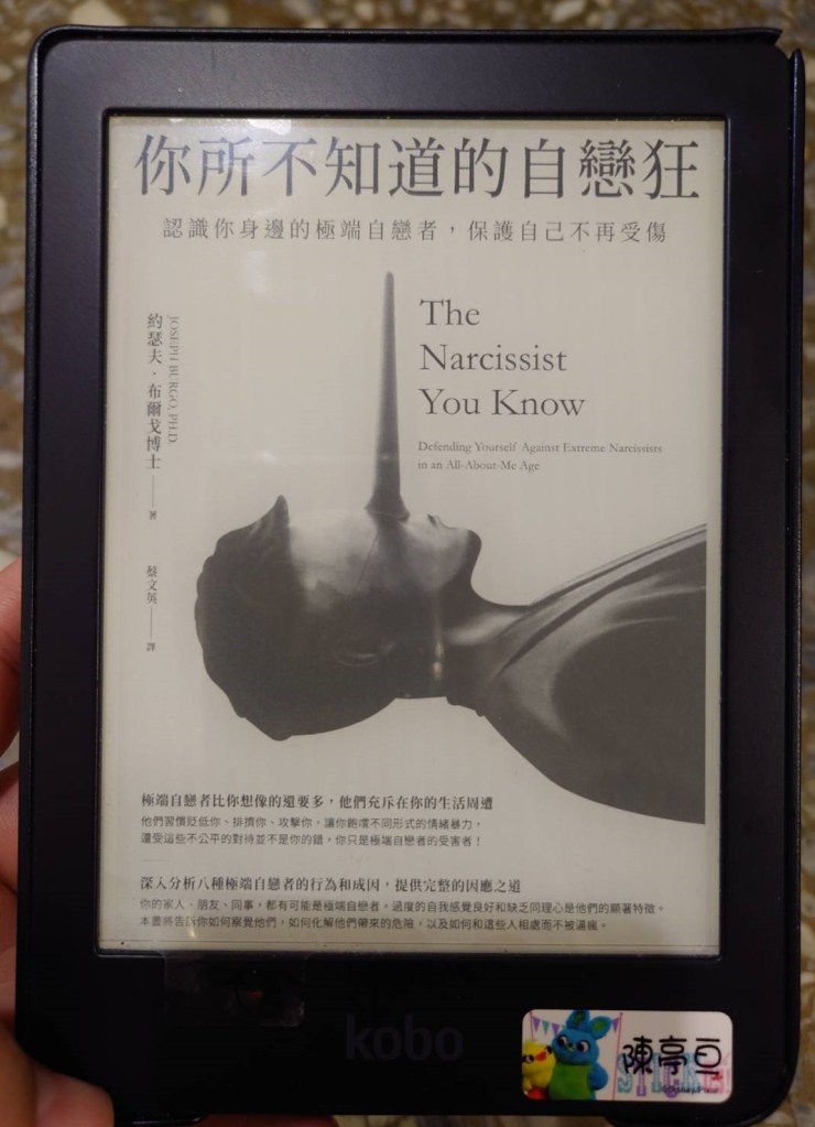 很多時候心理學類的書籍時常變成「我」與「他者」的對立,我是好的,而自戀者是不好的,誰誰誰是自戀者,誰像自戀者,所以我很喜歡作者在書的序章就寫下的這段,「本書的中心主題在於,想有效應付身邊的自戀者,很多時候意味著你得逐步接受自己的自戀。(〈序言〉一節,10之11,kobo六吋閱讀器,p.22之1008)」